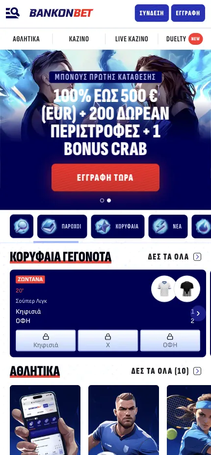 Καλώς ήρθατε στη mobile εμπειρία μας, σχεδιασμένη για παίκτες που θέλουν ευέλικτο παιχνίδι χωρίς να είναι δεμένοι σε υπολογιστή. Με το Bankonbet παιχνίδι από κινητό, μπορείτε να ανοίξετε τον ιστότοπο στο τηλέφωνό σας, να συνδεθείτε με Bankonbet σύνδεση και να συνεχίσετε ακριβώς από εκεί που σταματήσατε. Η mobile πλατφόρμα μας προσφέρει τις ίδιες βασικές ενότητες που βλέπετε σε desktop: κουλοχέρηδες, επιτραπέζια παιχνίδια, τίτλους live dealer, τζάκποτ, αθλητικό στοίχημα και εικονικά αθλήματα.